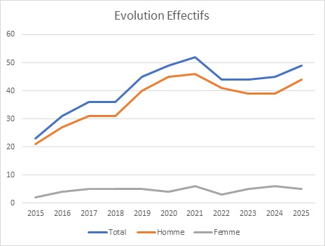 L’année 2025 est une année ou nos effectifs poursuivent leurs augmentations après la chute importante de 2020, il en est de même pour l'ensemble de la fédération.