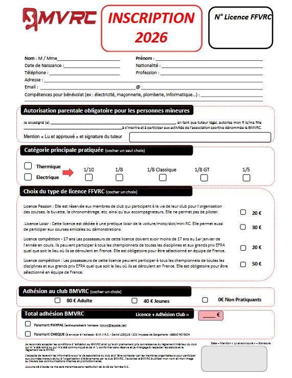 - Une partie fédérale (licence FFVRC). Cette part est définie par la FFVRC et est décrite ici
